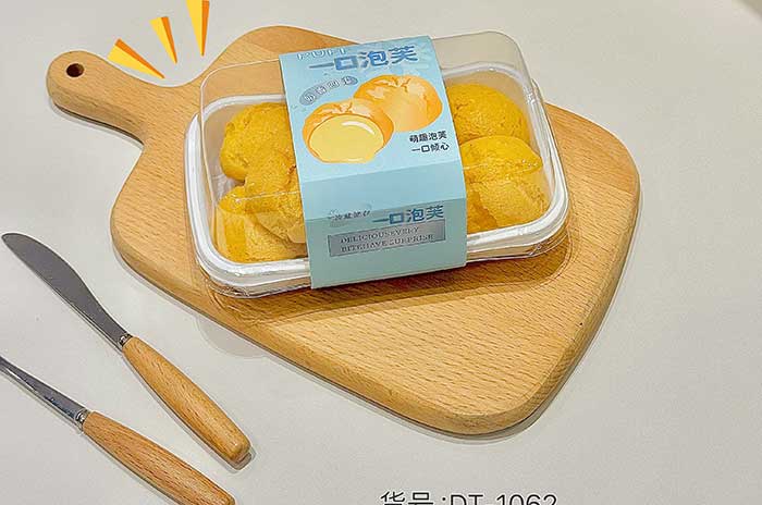 Furthermore, The Bite-sized cream puff boxes – PET food boxes have good chemical resistance, resisting the erosion of chemical substances and avoiding the risk of food contamination and spoilage. Many foods and beverages contain acids, alkalis, and other chemicals. These substances can react with packaging materials, potentially causing a decline in food quality. PET material, however, possesses good stability and is less susceptible to chemical reactions, preserving the original quality and taste of food.