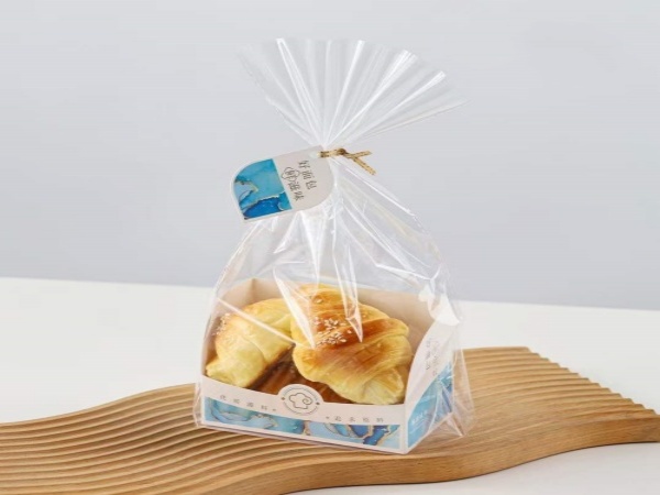 The Bread Bag T027-17 is a transparent, food-grade bag with a sturdy cardboard box bottom, measuring 12 x 7 x 9 cm (inner dimensions), designed to securely hold bread, toast, and other baked goods. Its clear material ensures excellent product visibility while the reinforced base provides stability during transport and display. Ideal for bakeries and retail, it combines practicality, freshness protection, and professional presentation.