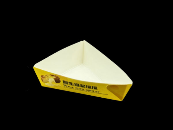 Ideal for individual desserts, the Cheesecake Lava Tart Triangle Stand is a unique yellow cardboard box. With inner dimensions of 9.5\*7.2\*2.5CM, it securely fits single portions of cheesecakes, ensuring they are well-presented and protected. Its triangular design creates a modern and memorable unboxing experience.