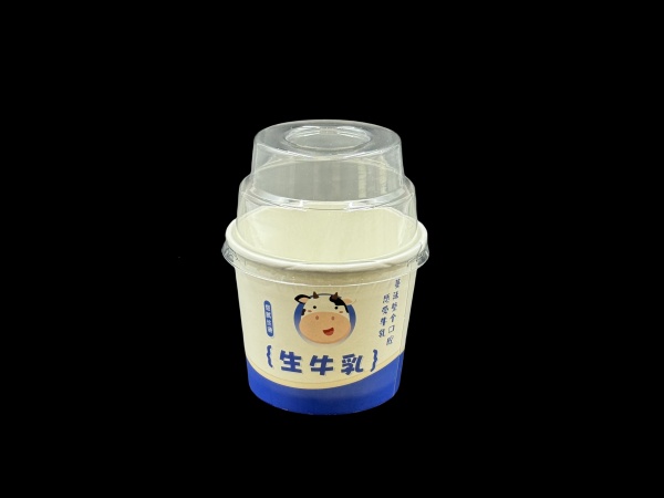 The Raw Milk Cup 8011 is an elegant off-white round container with a PET lid and paper base, measuring 8 x 11 cm (inner dimensions). Ideal for cakes and delicate desserts, it combines eco-friendly materials with a secure, transparent seal. Perfect for bakeries and premium food packaging.